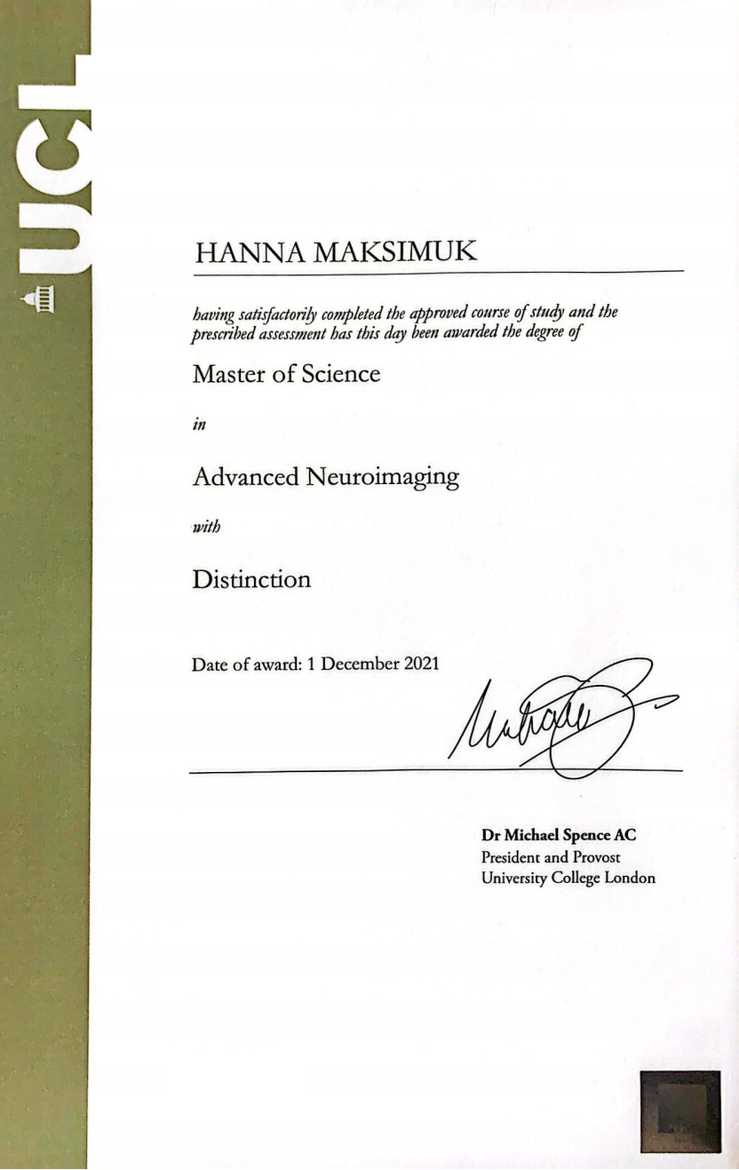 Окончила магистерскую программу университетского колледжа Лондона с отличием.